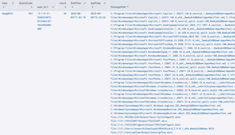 MSIXBuilder transforms what was traditionally a complex, multi-tool process into a single automated workflow that mirrors actual attacker techniques. By automatically handling certificate lifecycle management, dependency resolution, and package signing, the tool removes the technical barriers that previously prevented security teams from creating realistic test scenarios. This means defenders can quickly generate both signed and unsigned MSIX packages to validate their AppXDeployment event log coverage, confirm detection rules, and build detection coverage that actually works against real-world threats.