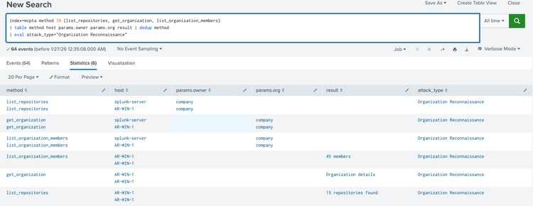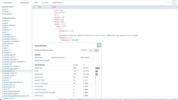 As stated previously in this blog, MCP as revision of 06-18-2025, encodes all messages using JSON-RPC 2.0. The Splunk Threat Research Team (STRT) has now published a Splunk Technology Add-On (TA) which allows direct parsing of the JSON-RPC output from MCP Servers; this allows security analysts to monitor metadata from these MCP interactions. The data ingested, is parsed, and analyzed from JSON-RPC protocol messages from Model Context Protocol (MCP) servers.