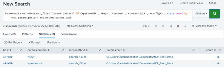 In the next example, we can detect sensitive terms in mcp.method search_files via param.patterns field.