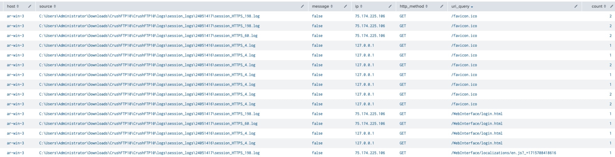 (CrushFTP Logged in, Splunk 2024)