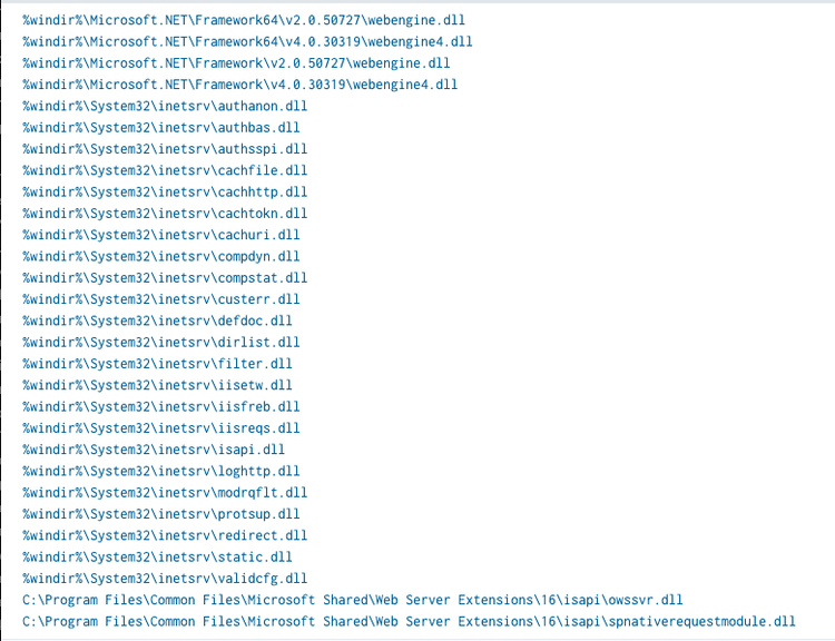 The combination of SharePoint vulnerabilities with IIS module persistence creates a particularly dangerous scenario. Typically, attackers first exploit a critical vulnerability in the hosted application for initial access before dropping a script web shell as the first stage payload. At a later point, the attackers install an IIS backdoor to provide highly covert and persistent access.