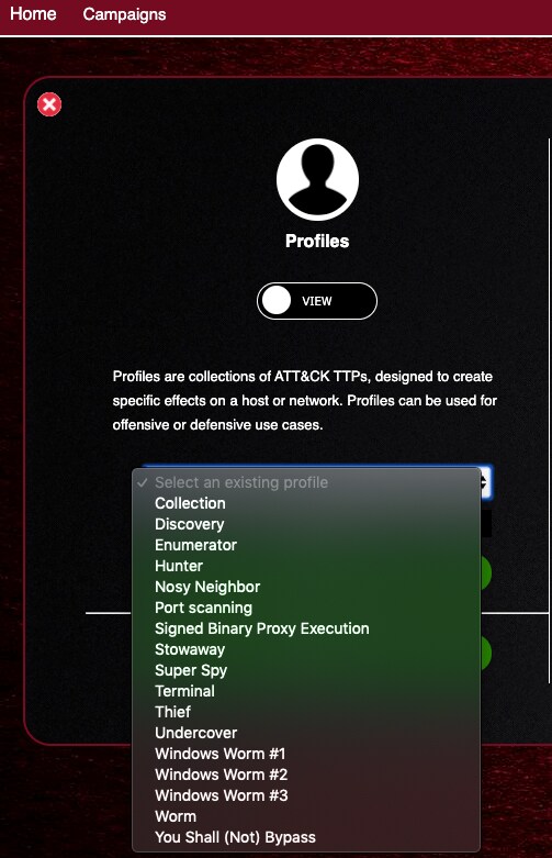 Once a profile has been selected — and knowing the actions that will be performed on agent based on profiles — we must select the menu operations, which basically shows parameters that can be applied to actual abilities from adversary profile (e.g. the level of obfuscation when executing against targeted agent/system).