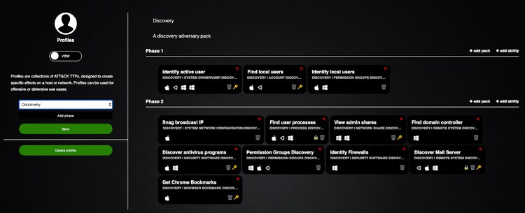 There are 17 adversary profiles here is an example of the Discovery profile. As it can be seen in the following graphic, it describes the number of abilities that can be performed on Agent.