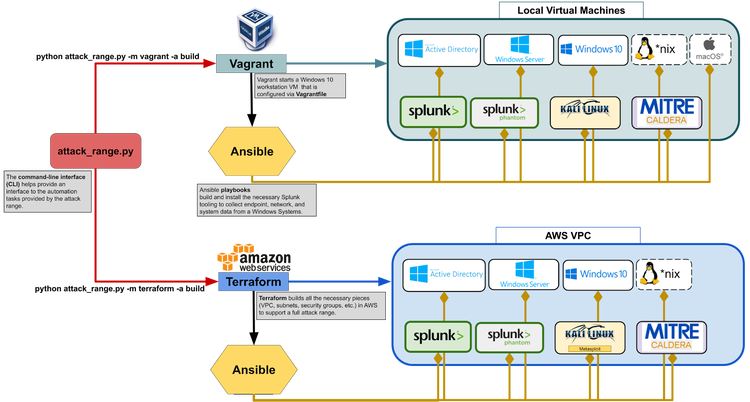 The Splunk Security Research Team has been working on new improvements and additions to the Splunk Attack Range, a tool that allows security researchers and analysts to quickly deploy environments locally and in the cloud in order to replicate attacks based on attack simulation engines. This deployment attempts to replicate environments at scale, including Windows, workstation/server, domain controller, Kali Linux, Splunk server and Splunk Phantom server.