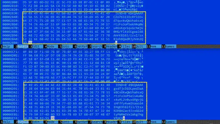 Figure 5 presents a basic hex view snippet of two malicious .ico files that the decrypted DLL attempts to download. The hex bytes highlighted in the yellow box represent the base64-encoded and encrypted C2 URL link, which begins with the "$" character. We recommend using the decrypt-ico.py script created by the Volexity team to automatically decrypt this string. The decrypted C2 server can be found in the IOC section of this blog.