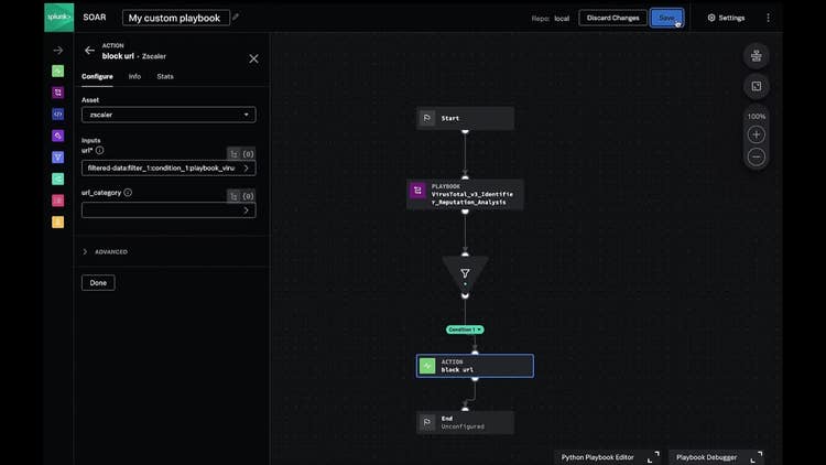 Suppose a SOC team wants to incorporate helper playbooks into their custom workflow. Let’s take an example where a SOC needs to receive alerts via email for specific malware indicators with reputation scores tagged on them. We will use Splunk SOAR to accomplish this task in just a few simple steps: