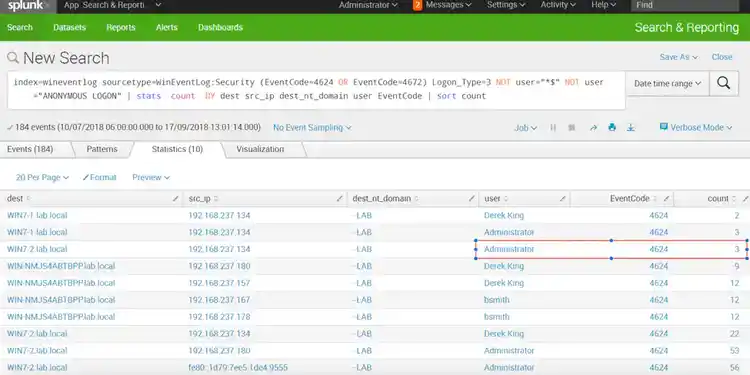 Based on our searches, we now understand the user administrator connected over the network from 192.168.237.134 and gained command line access to our victim host.