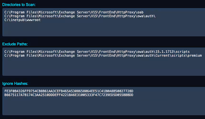 Figure 5: ShellSweepX directories and files to ignore, Splunk 2024