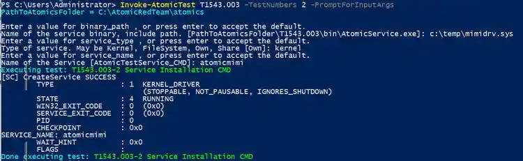 The STRT modified the Atomic to allow for the service type to be added and committed back to Atomic Red Team. There are 4 main service types - Own (default), Kernel, FileSystem and Share.