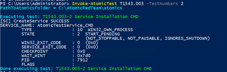 There is one Atomic test (test number 2) that showcases how to create a new service. Under MITRE ATT&CK technique T1543.003, we can simulate the addition of a service with sc.exe.