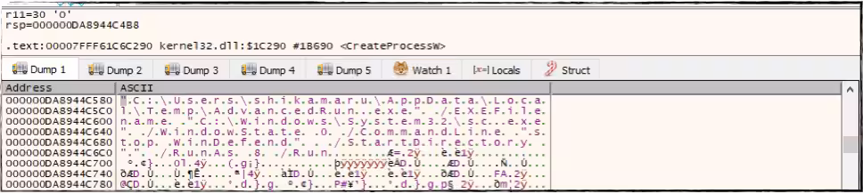 It will create a suspended process of InstallUtil.exe in %temp% folder to inject the file corrupter malware. Below is the CreateProcess API call for the said file to prepare its injection.