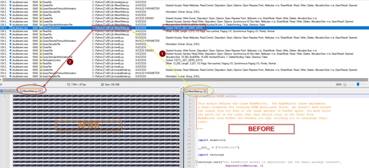 Below is an example of the event that happened to the compromised test lab while it wipes the file. We can see how the “MimeWriter.py” file was wiped with zero bytes after calling the IOCTL code FSCTL_SET_ZERO_DATA.