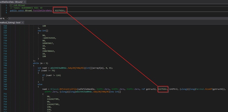 Then It will open the target file using NtOpenFile() native API to zero or wipe it using a native API NtFsControlFile() that sends an IOCTL control code FSCTL_SET_ZERO_DATA directly to a specified file system. The wiper can wipe system files that make the compromised host unbootable after the restart. Below is the code screenshot of how this API was used in this wiper to do its destructive function.