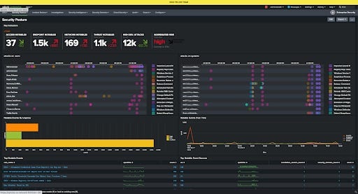 Enterprise Security was set up with multiple out-of-the-box detections enabled, with the addition of the latest content packs installed. This coupled with some custom searches and dashboards specifically targeted at the operation created by members of the Yellow Team.