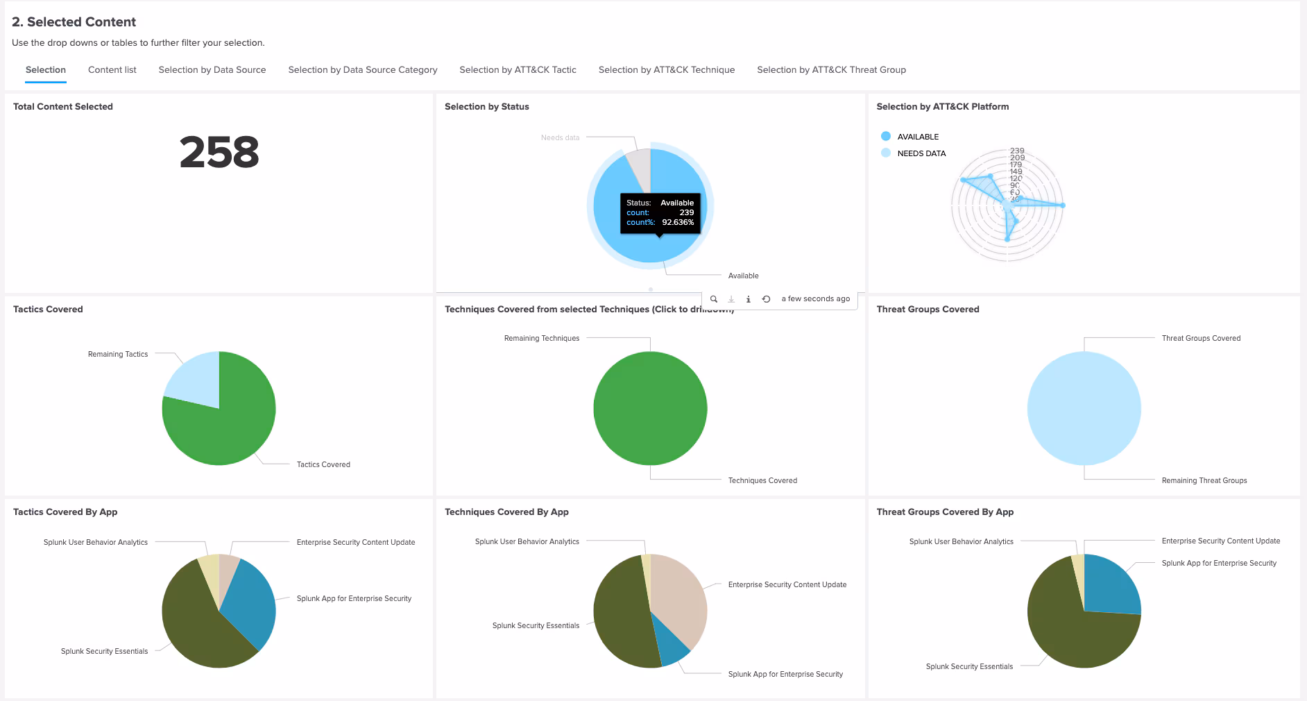 Coverage means we have at least some content (either available or active) that aligns with the specified Technique. Furthermore, MITRE ATT&CK only has a portion of “known” threat actors that only capture what has happened and do not project all possible outcomes of things that could happen.