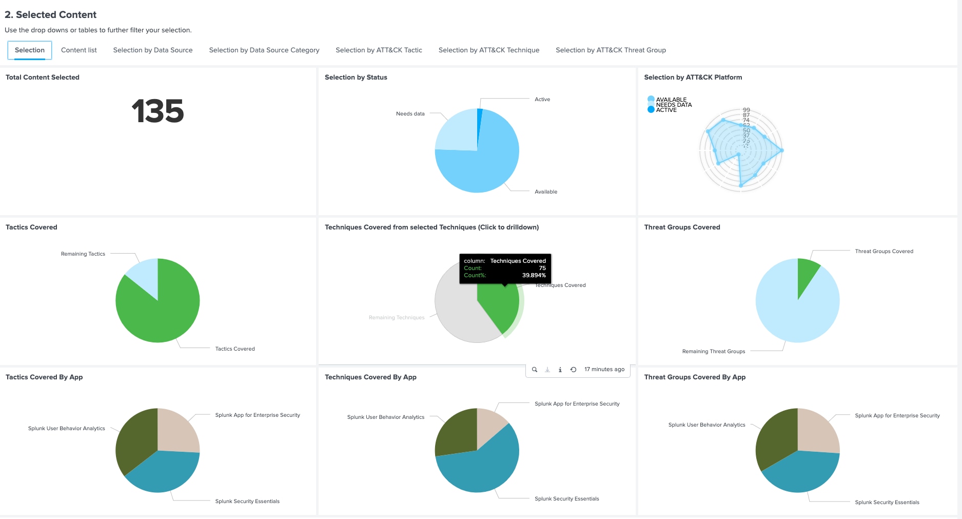 Coverage means we have at least some content (either available or active) that aligns with the specified Technique. Furthermore, MITRE ATT&CK only has a portion of “known” threat actors that only capture what has happened and do not project all possible outcomes of things that could happen.