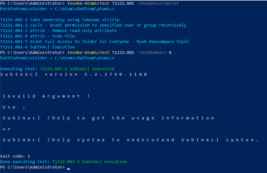 This test simulates an adversary executing the Windows Resource kit utility SubInAcl. Upon execution, a process creation log should be generated, indicating successful execution.