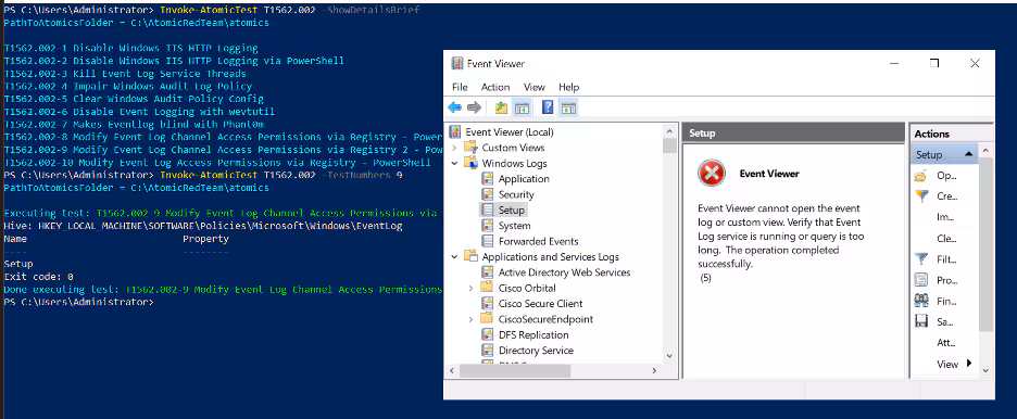 Figure 7: Modify Event Log Channel Access Permissions via Registry - PowerShell Atomic Test