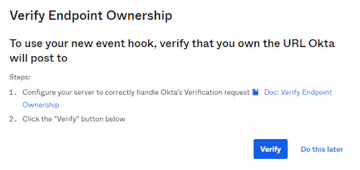 What’s an Event Hook? Well, Okta can send all manner of different events, immediately, via a feature called Event Hooks (very similar to a webhook). These present many different kinds of workflow integration possibilities with any system that can accept output from Event Hooks.