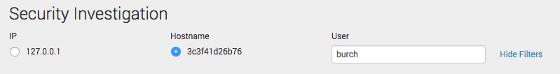 Incorporating Approach B in our security dashboard means that our hidden search can try to correlate the ip or hostname back to the user. Any values found will populate the user free text field where we're free to edit the value. Alternatively, if no such match is found, we can manually enter a value since it's still a free-text field.