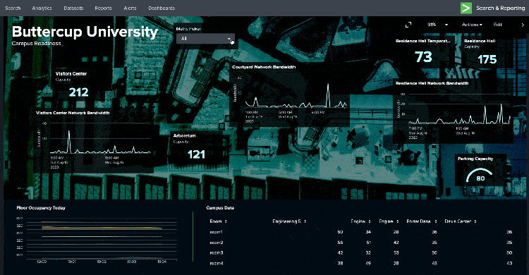 When this logic is used throughout your dashboard, you can start to create layouts which are responsive to the values of your tokens. In the example below, we can selectively view different metrics of Buttercup University at the pick of a dropdown.