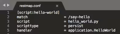 In this example, we create a script stanza and map this stanza to hello-world, the unique name associated with our custom REST handler.