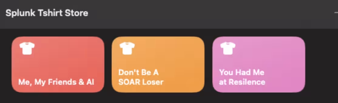 - Pick a Shirt Design – Each slogan had its own shortcut (e.g., "Me, My Friends & AI", "Don’t Be A SOAR Loser", "You Had Me at Resilience").