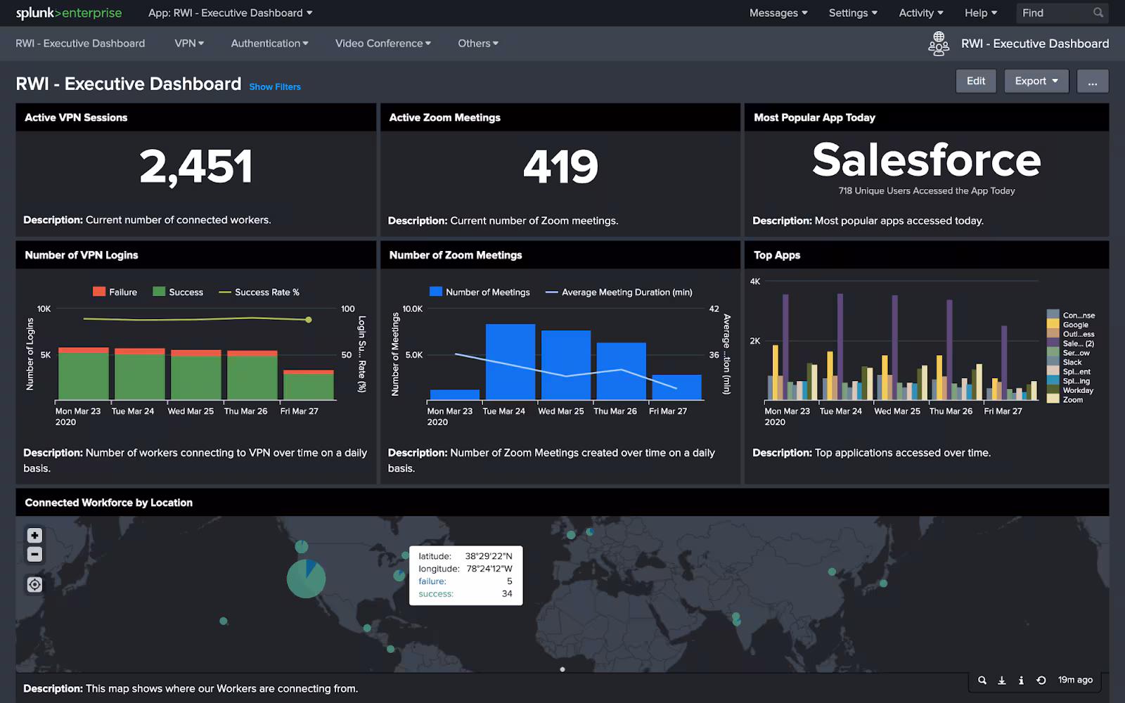 A few weeks ago, one of our customers that has become more reliant on web-based collaboration technologies was deploying the Splunk Remote Work Insights (RWI) Executive Dashboards. They needed to onboard operational data into Splunk from Zoom, and because of their size, the rate and amount of data we needed to collect was pretty vast.
