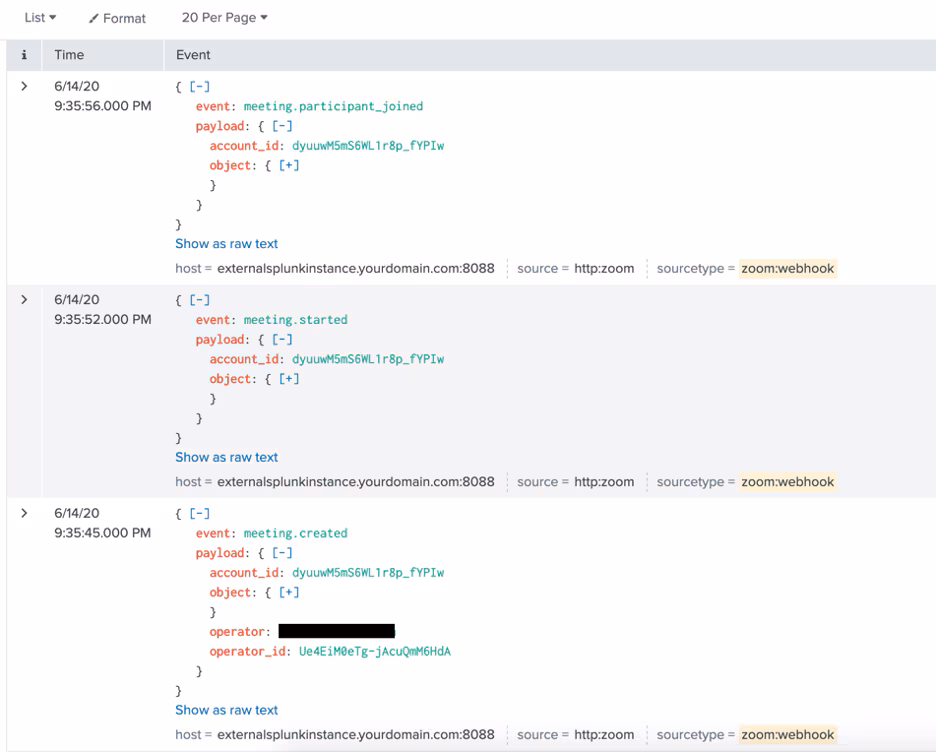 sourcetype = zoom:webhook