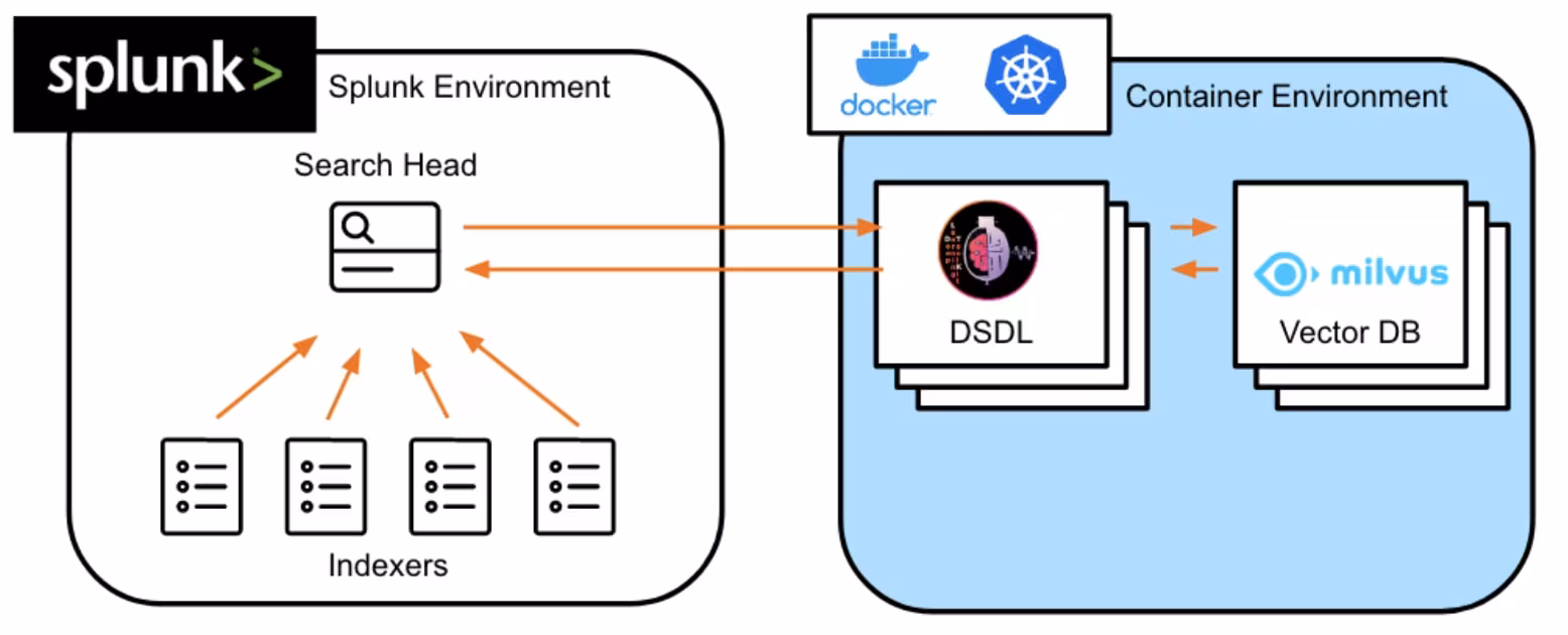 Below you’ll see the architecture of integration through DSDL with the open-source vector database Milvus. This permits the encoding and storing of vectors and labels in a Milvus collection and then enriching searches with results queried from Milvus.
