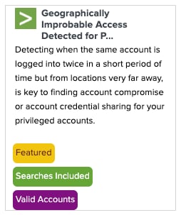 対象としたのは「Geographocally Improbable Access Drtected for Privileged Accounts(特権アカウントで地理的に不適切なアクセスが検出されました)」という検知ルールのSPLクエリです。このルールは複数のアクセス元IPアドレスに基づく位置情報の地点間の距離とアクセス時間間隔から、通常の移動手段では不可能なアクセスがあった場合に検出します。