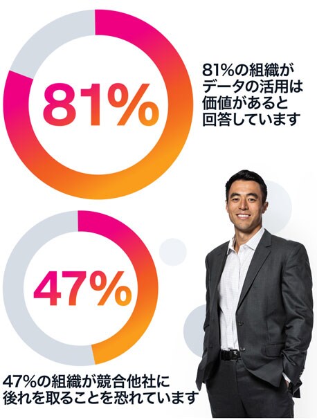 - 47%が、今のペースでデータが増加し続けるといずれ競争から脱落すると回答しています。