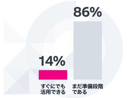 データの時代に対する準備ができていると回答した組織はわずか14%でした。さらに、準備ができていない86%のうち、準備する予定があると回答した組織も8%にとどまりました。